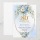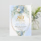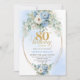 Convite Elegant Dusty Blue Peonies Gold Boho 80th Birthday