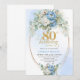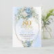 Convite Elegant Dusty Blue Peonies Gold Boho 80th Birthday