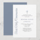 Elegant Dusty Blue Script Boy First Communion Invitation.