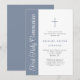 Convite Elegant Dusty Blue Script Boy First Communion Invi