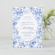 Make a refined first impression with this wedding invitation featuring classic French toile de jouy roses in elegant shades of navy blue, royal blue, dusty blue, and deep blue. Inspired by timeless European floral design, this invitation blends traditional sophistication with modern elegance, perfect for a classic, romantic, or formal wedding celebration.