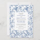 Convite Elegant Dusty Blue Toile Floral Wedding Invitation