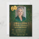 The top of the design shimmers with a cascade of realistic, shimmering gold sparkle over a deep green background, reflecting light and luxury. The large '60' numbers are rendered in a sleek metallic gold. A deep, dark green background and gradient offer a refined and upscale look, making it ideal for a formal dinner party or an evening celebration. Easily add your favorite photo to the central frame to make this card truly unique and personal.