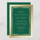 Elegant emerald green and gold wedding invitation.