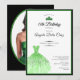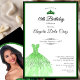 This elegant emerald green and black 18th birthday debut invitation has a dress, a green tiara crown, and a black border with a personalizable template to create your own message. The invitation template is customizable in the listing editor and is also available as a digital download that's printable after you personalize it. The pretty and minimalist design is nice for a formal event to celebrate a milestone birthday.