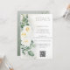 This elegant eucalyptus greenery wedding details card showcases white roses, flowing botanical elements, and delicate gold accents for a refined and nature-inspired design. Ideal for providing reception details and wedding information in a cohesive suite.