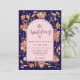 Wildflower Floral Arch Navy Blue & Blush Pink Wedding Invitation Fall, Rustic Boho Botanical Design