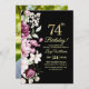 An elegant modern design featuring gold 74 number, watercolor floral and a special photo of the birthday person on the back of the invitation. Customize the details for a unique and chic Birthday Celebration.