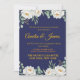 Convite Elegant Floral Navy Blue Wedding Invitation