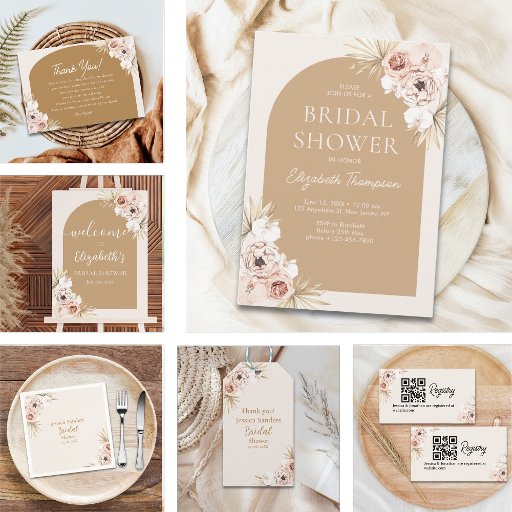 Celebrate love and friendship with this boho-style bridal shower design! With delicate, light-colored flowers and whimsical design, this boho-style design sets the perfect tone for an elegant and relaxed pre-wedding celebration. Ideal for a bridal shower that embraces natural beauty and bohemian elegance, this design ensures your guests have an unforgettable gathering.