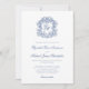This elegant french blue monogram wedding invitation features an ornate crest with interlocked fancy script calligraphy for the initials of the bride and groom and the names. Find matching products in the collection, or message me through Zazzle Chat for more products and design tweaks.