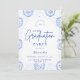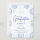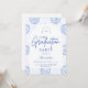 An elegant graduation celebration design featuring a delicate blue toile floral border inspired by classic European porcelain and vintage botanical prints. The intricate florals frame a clean arched center panel, creating a refined and timeless composition that highlights the graduate’s name and event details beautifully. Soft blue tones against a crisp ivory background give the design a sophisticated yet celebratory feel. Perfect for a stylish graduation gathering with a classic, romantic aesthetic.