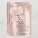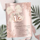 Convite Elegant Glitter Drips Pink Bow Rose Gold Sweet 16