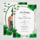 This elegant emerald green, gold, and white 18th birthday debut invitation has roses and butterflies with a personalizable template to create your own message. Add your photo on the back. The invitation template is customizable in the listing editor and is also available as a digital download that's printable after you personalize it.