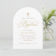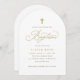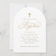 Convite Elegant Gold Cross Script Calligraphy Baptism