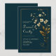 Convite Elegant Gold Floral Navy Wedding