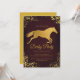 Invite your guests to a sophisticated and exclusive Kentucky Derby event with this stunning invitation featuring a shimmering gold horse silhouette against a deep burgundy background. Adorned with intricate vintage filigree borders and elegant script typography, this design exudes old-world charm and luxury.