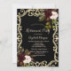 Convite Elegant Gold Frame Burgundy Roses Black Retirement