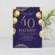 Convite Elegant Gold Glitter Birthday 40th with Balloons