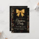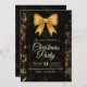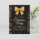 Convite Elegant Gold Glitter Bow Dark Christmas Party