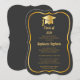 Convite Elegant Graphite | Gold Cap Graduation Party