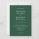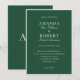 Create your own custom wedding invitations in a luxury old money aesthetic. Add your personalized details and details of your wedding day in elegant, timeless typography featured here in green and cream color design.
