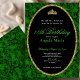 This elegant emerald green and gold floral 18th birthday debut invitation has roses, a gold tiara crown, and a gold glitter oval with a personalizable template to create your own message. The invitation template is customizable in the listing editor and is also available as a digital download that's printable after you personalize it. The back has sage green roses covering the entire surface to create and classic and classy mood for your event.