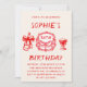 The clean white background and bold red typography create a stylish, contemporary look that works beautifully for both intimate gatherings and lively celebrations. Easily personalize the name, age, date, time, location, and RSVP details to fit your event.