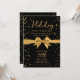 Convite Elegant Holiday Open House Gold Bow Black