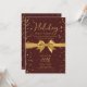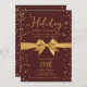 Convite Elegant Holiday Open House Gold Bow Burgundy