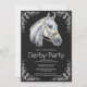 Celebrate your Derby Party in style with this elegant invitation featuring a beautifully illustrated horse in black and white. The intricate floral frame adds a touch of sophistication, while the bold, clean typography ensures all the event details are easily visible. Perfect for a classy Derby celebration.
