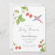 Convite Elegant Hummingbirds Strawberry Baby Shower