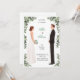 Featuring a beautifully hand-drawn bride and groom surrounded by soft green foliage, this design blends modern minimalism with natural romance.
