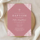 Elegant Lace Pink Baby Girl Baptism Invitation.