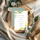 This simple elegant Mediterranean inspired wedding invitation features watercolor lemons with elegant green leaves and an olive branch with a light yellow border. Perfect for an outdoor or Italian garden themed wedding.