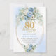 Convite Elegant Light Blue Peony Floral Gold 80th Birthday