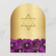 This elegant watercolor floral arch shaped Bat Mitzvah invitation features a border of magenta roses with a gold Star of David on a faux gold shiny background. Personalize all of your celebration details in modern script calligraphy. Designed by Susan Coffey.