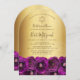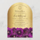 Convite Elegant Magenta Rose Floral Gold Bat Mitzvah