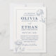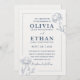 Convite Elegant Minimalist Blue Floral Sketch Wedding
