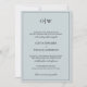 Light gray blue wedding invitations with a minimalist monogram design are the perfect choice for couples seeking a clean, sophisticated look for their ceremony. This elegant invitation features a soft, pale blue-gray background with crisp black typography and a fine black border that frames the content with timeless precision. The centered monogram at the top adds a custom touch, while the balance of classic serif and cursive fonts brings subtle romance to the layout. Perfect for modern weddings, spring or winter celebrations, or city-chic events, this invitation offers both contemporary simplicity and formal elegance. The structured format clearly presents all essential details including names, date, time, and venue, making it ideal for couples who appreciate understated style and clarity. Whether you're hosting a minimalist indoor event or a refined outdoor celebration, this invitation sets the tone for a polished and thoughtfully designed wedding day.