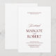 A minimalist wedding invitation featuring a refined burgundy and white palette, paired with elegant serif typography and a soft script accent. The clean, structured layout creates a modern and understated look, perfect for couples who prefer a calm, editorial style.