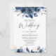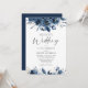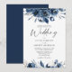 Convite Elegant Modern Navy Blue and Silver Floral Wedding