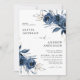 Convite Elegant Modern Navy Blue Floral Wedding