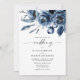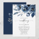 Convite Elegant Modern Navy Blue Flowers & Script Wedding