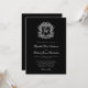 This elegant black and white monogram wedding invitation features an ornate crest with interlocked fancy script calligraphy for the initials of the bride and groom and the names. Find matching products in the collection, or message me through Zazzle Chat for more products and design tweaks.
