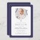 Elegant Navy Blue Bow Photo Boy Baptism Invitation. For best results upload a square image of the baby.