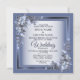 Convite Elegant Navy Blue Floral Framed Silver Wedding