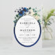 Convite Elegant Navy Blue Floral Wedding Invitation | Edit