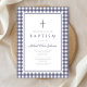 Convite Elegant Navy Blue Gingham Boy Baptism