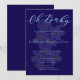 Convite Elegant Navy Blue Oh Baby Script Floral Photo